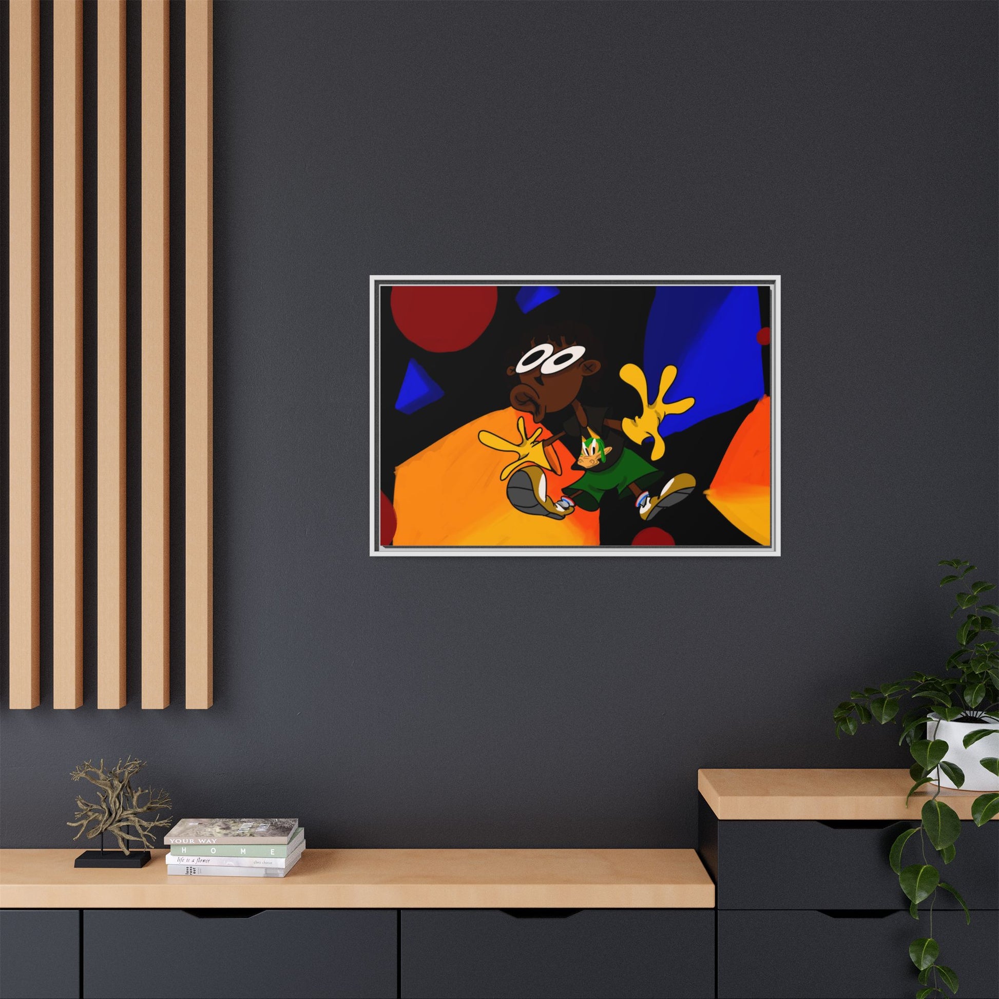 Gravity Colorful Cartoon Art Print — Framed Matte Canvas