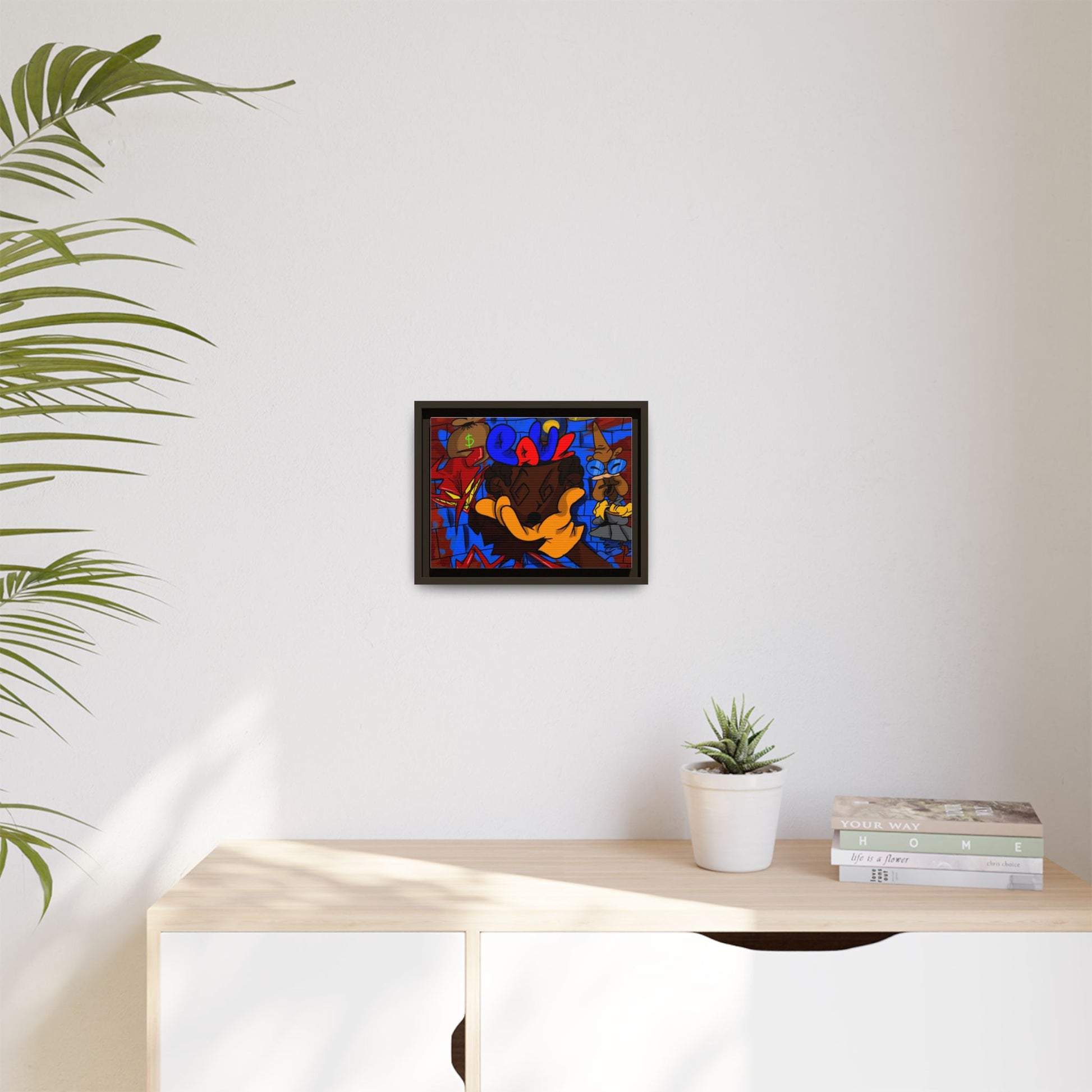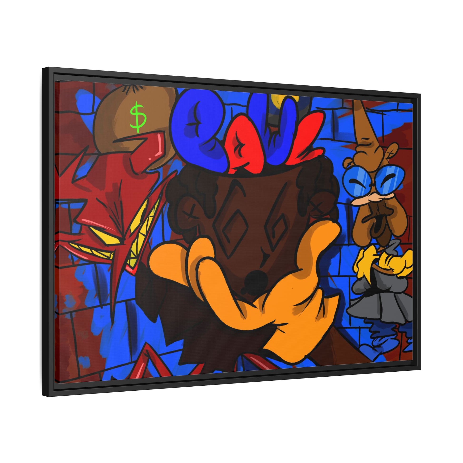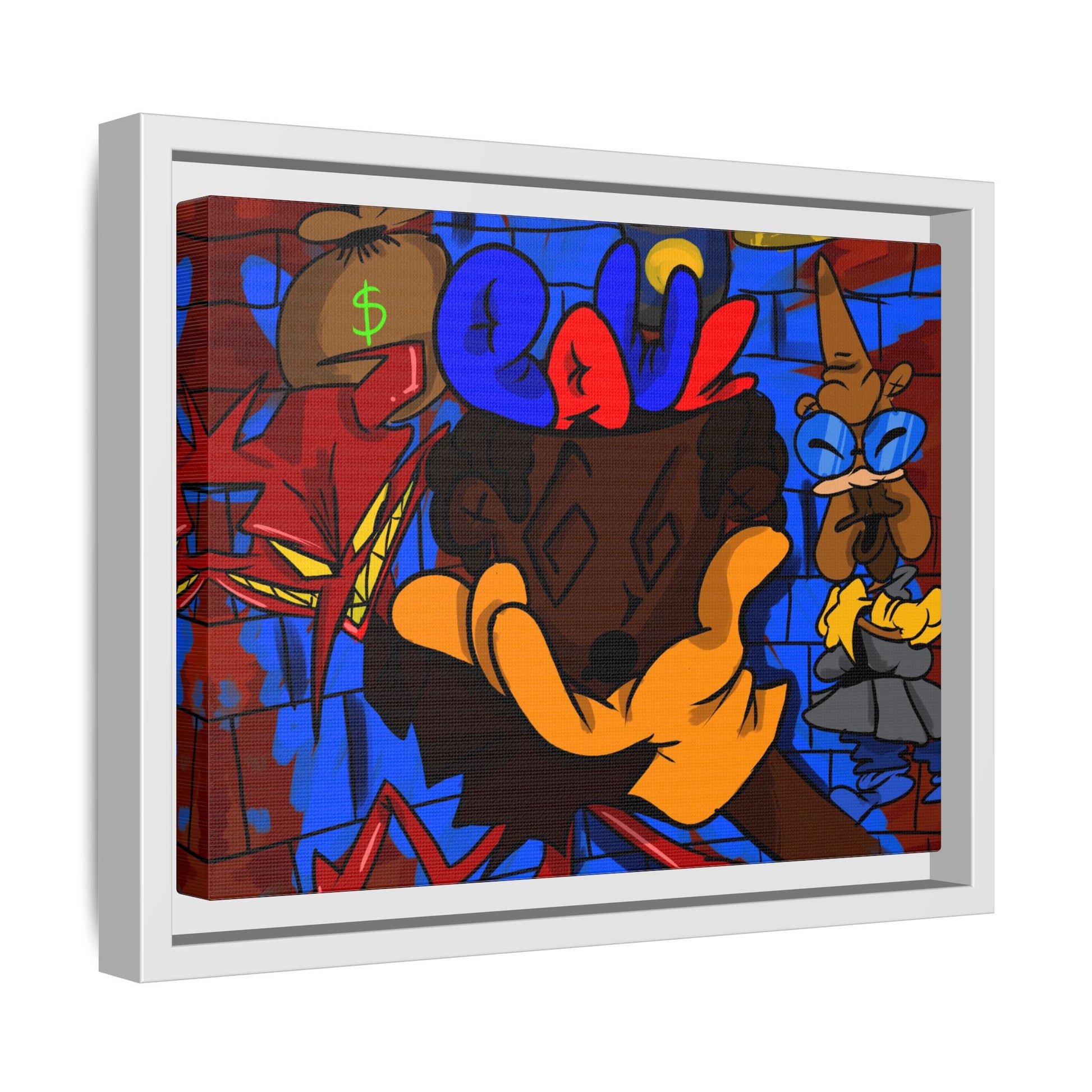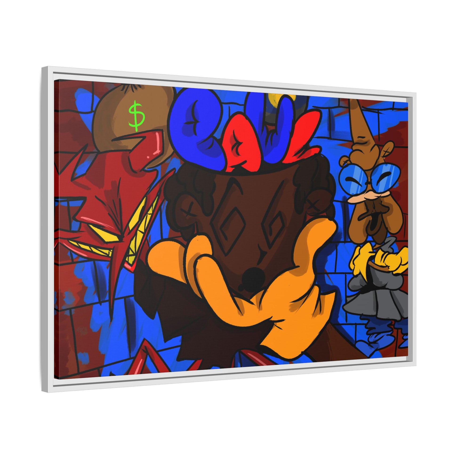Head Space Hustle Framed Matte Canvas Print — Colorful Urban Graffiti Art